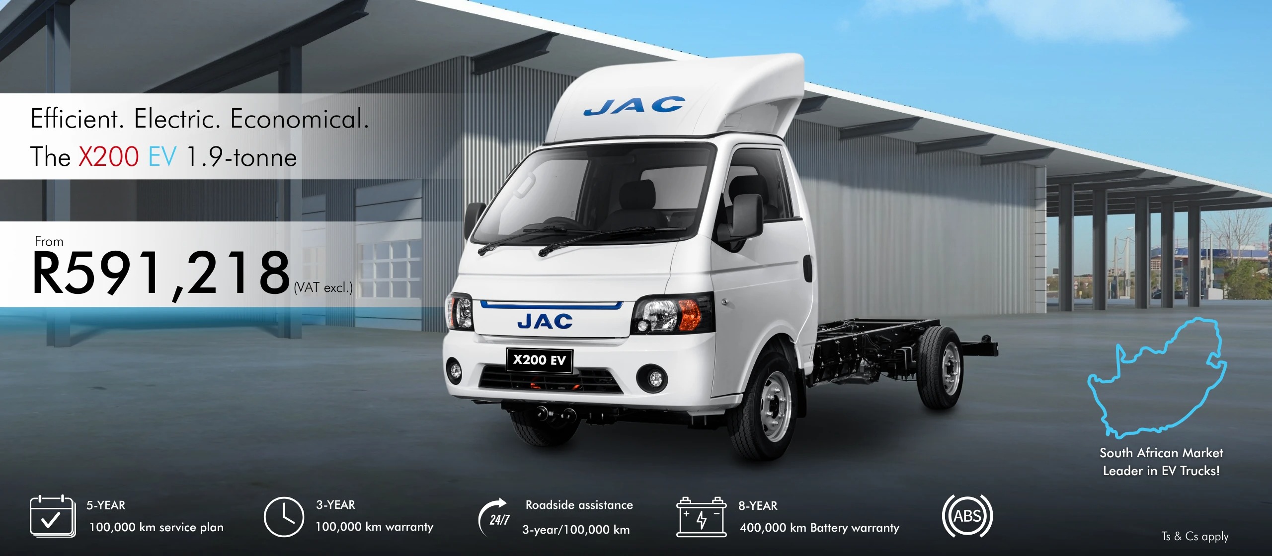The JAC X200 EV is South Africa’s first fully electric forward-cab light commercial vehicle — offering businesses a zero-emission alternative without sacrificing load capacity. With a 1.9-tonne payload and the same tough chassis as its diesel siblings, it’s ideal for green fleet conversions, last-mile delivery, and urban operations looking to cut fuel costs while aligning with ESG goals. Instant torque, near-silent operation, and dramatically reduced running costs make this a smart move for tomorrow’s logistics.
