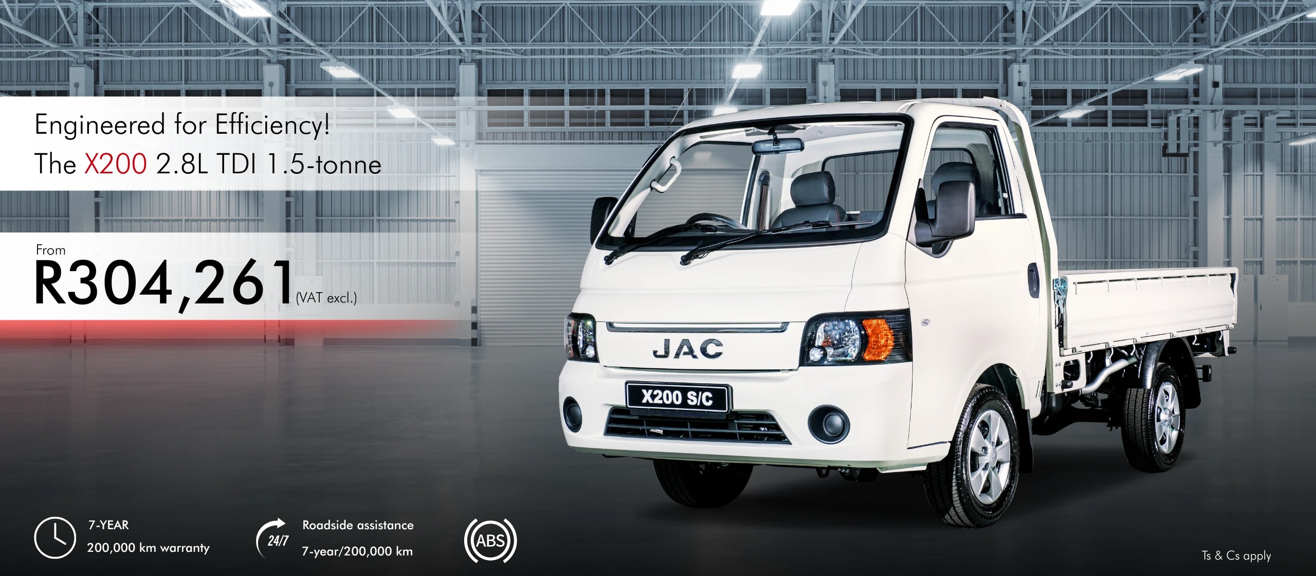 Built to tackle South Africa’s toughest loads with ease, the JAC X200 Single Cab is a 1.5-tonne forward-cab light commercial vehicle engineered for durability, maneuverability, and unmatched payload efficiency. Its compact footprint allows for tight urban deliveries, while the powerful 2.8L turbo diesel engine ensures consistent performance under pressure. Whether you’re hauling construction materials, FMCG goods, or essential services equipment, the X200 Single Cab is the reliable partner your business needs.